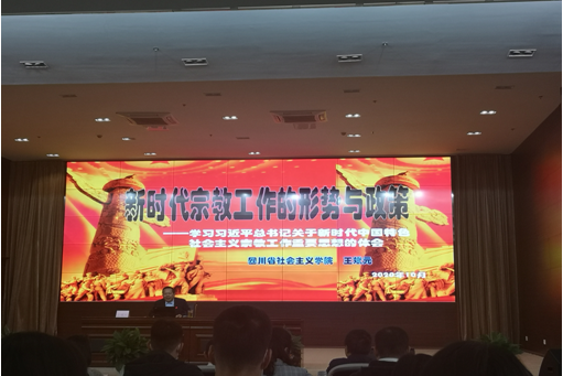 10月28日上午,四川省社会主义学院党组书记、省委统战部副部长王斌元以《新时代宗教工作的形势与政策》为题,为师资培训班学员作专题辅导报告。